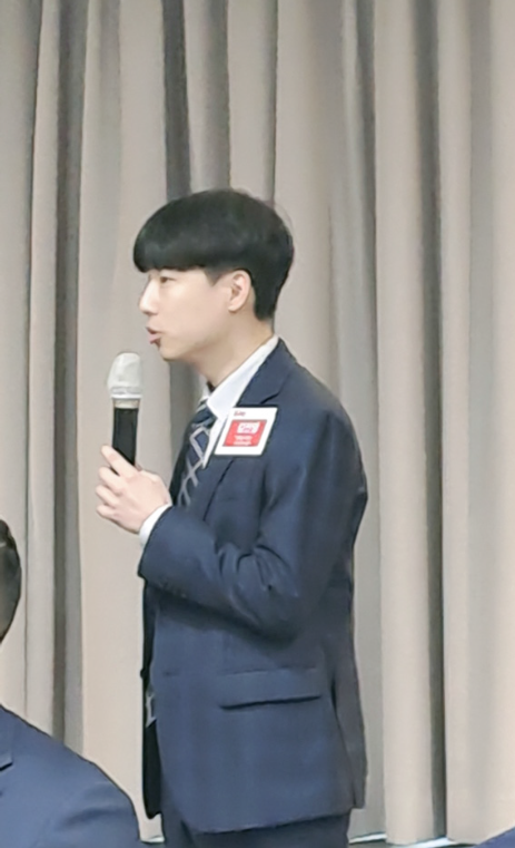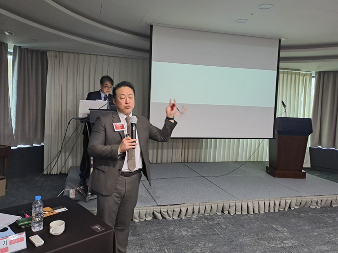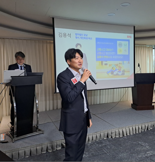 SJ골드스톤 전문분야 부동산 개발시행의 김진영대표님이 비엔아이 목표와 개요에 대해서 발표하고 있습니다