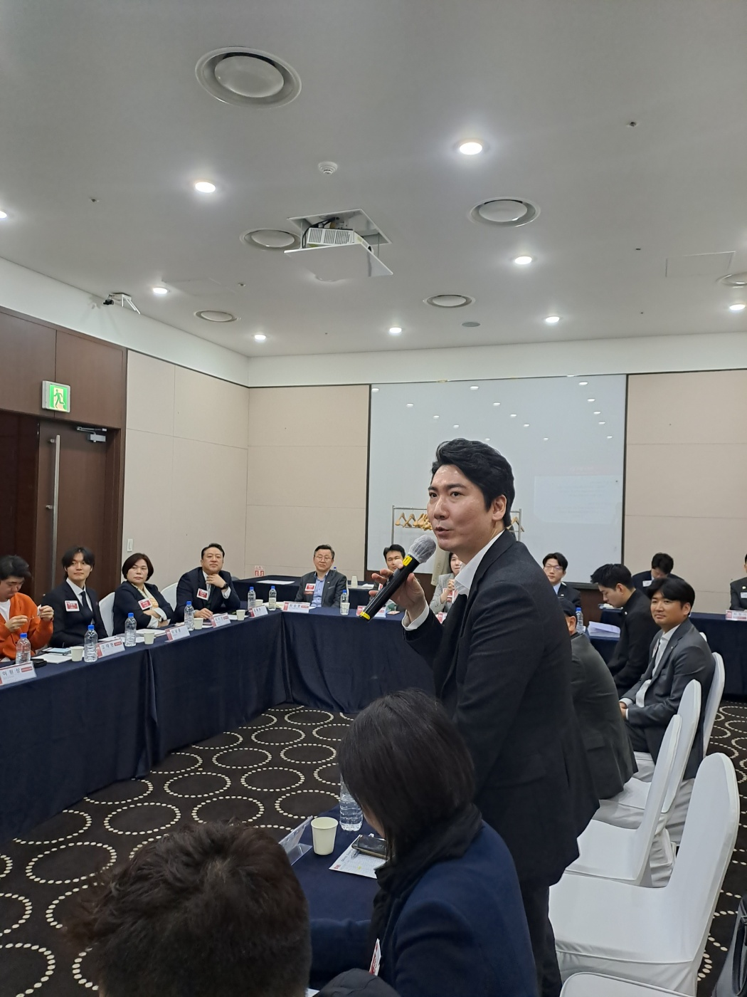 노무법인 화율 제영직 노무사님이 기여와 참여를 발표하고 있습니다.