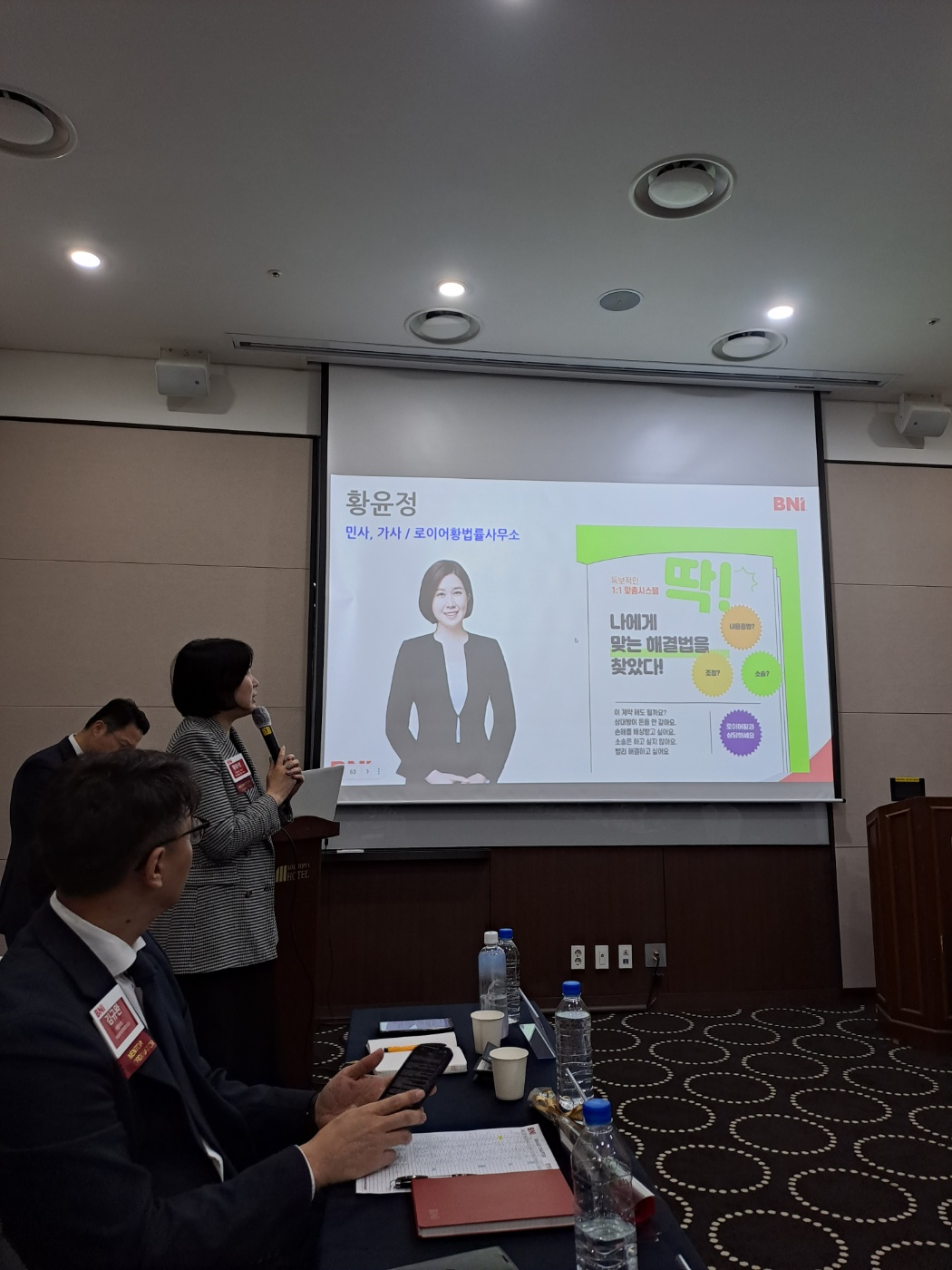 로이어황 법률사무소 전문분야 민사,가사 소송의 황윤정변호사님이 위클리 발표를 하고 있습니다.