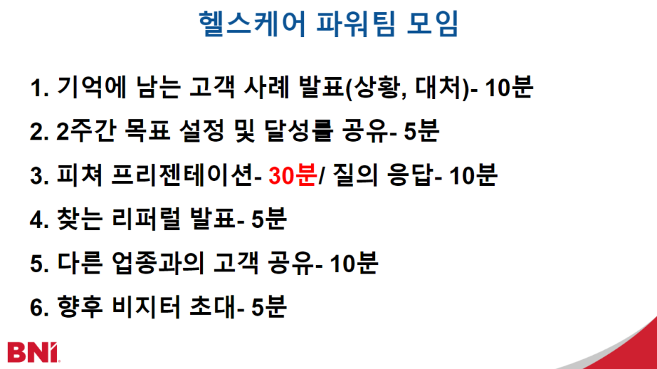 - BNI에서의 대화법에 바탕해 서로 애정을 갖고 솔직히 소통하라