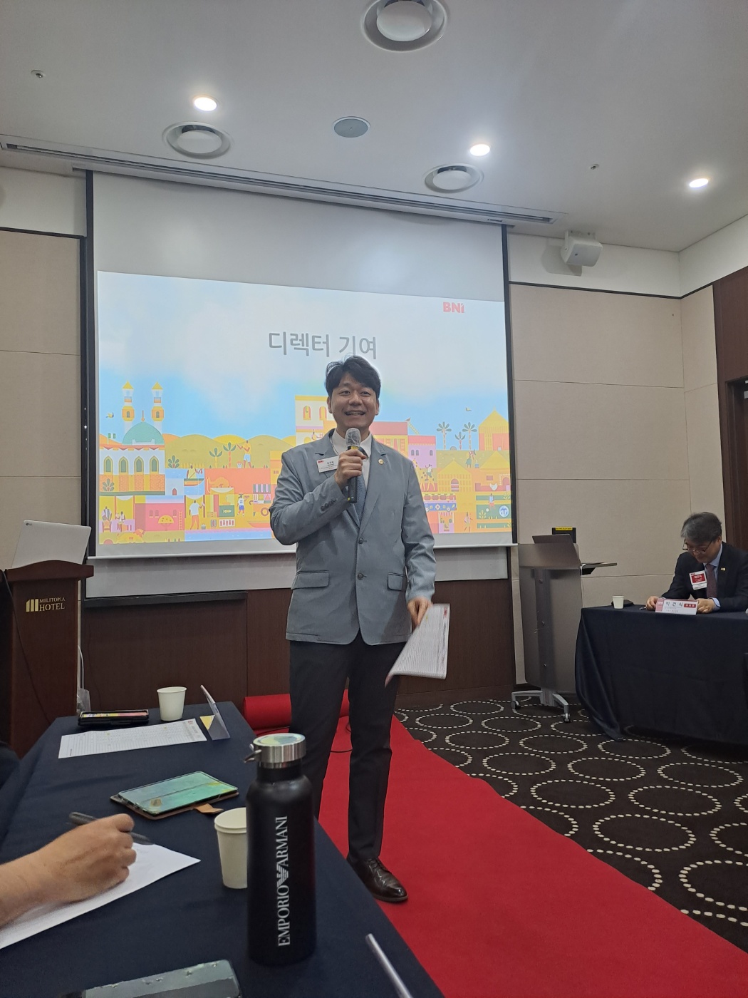 매주 목요일 밀리토피아호텔에서 진행되는 bni 멤버들의 비즈니스 쇼가 펼쳐집니다.