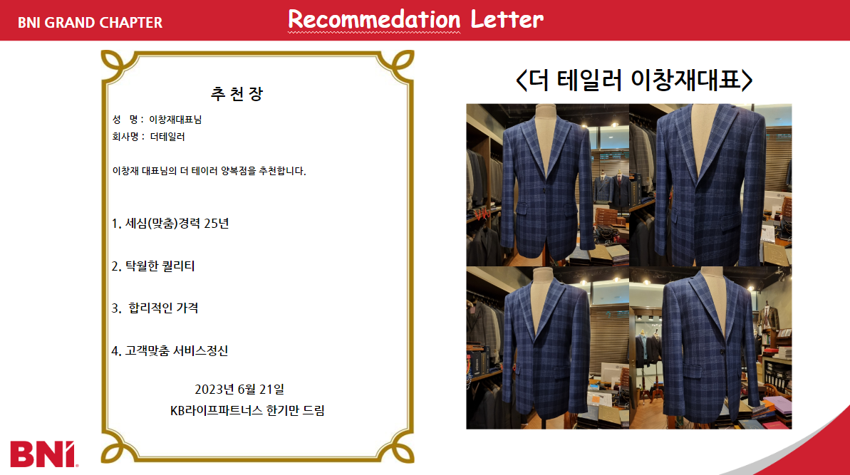 한기만의장님께서 더테일러의 이창재 대표님의 서비스를 추천합니다.