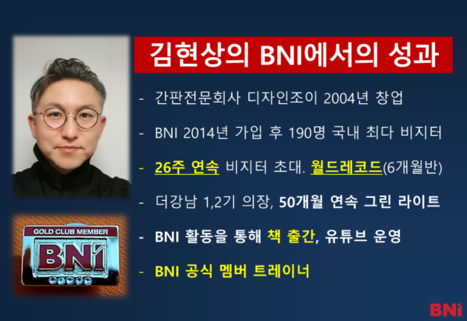 bni 더강남 챕터 디자인조이 간판업 김현상 대표님의 BCD 데이를 위한 비지터 초대 노하우를 알 수 있는 시간이었습니다.