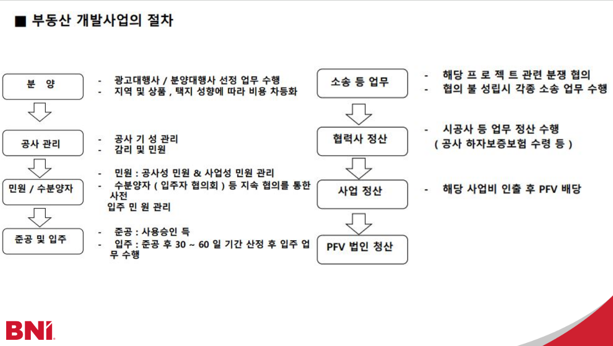 생소한 부동산 시행에 대해서 부지매입 - 개발컨셉설정 - 설계 - 분석 - 인허가 - 시공사선정 - 분양 - 공사 - 준공 및 입주 - 사업정산까지 단계별로 알기 쉽게 설명해 주었습니다.