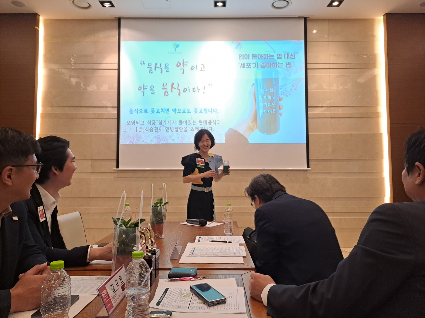 엔잭타 김미소 대표가 직접 시음을 하면서 먹방으로 대표상품을 설명해주셨습니다.