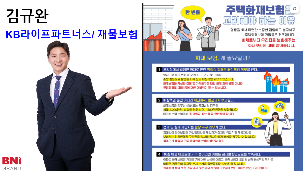 혹시 모를 사고 불행을 대비하는 일이니 재물보험 전문가 김규완 대표님을 찾아주세요.