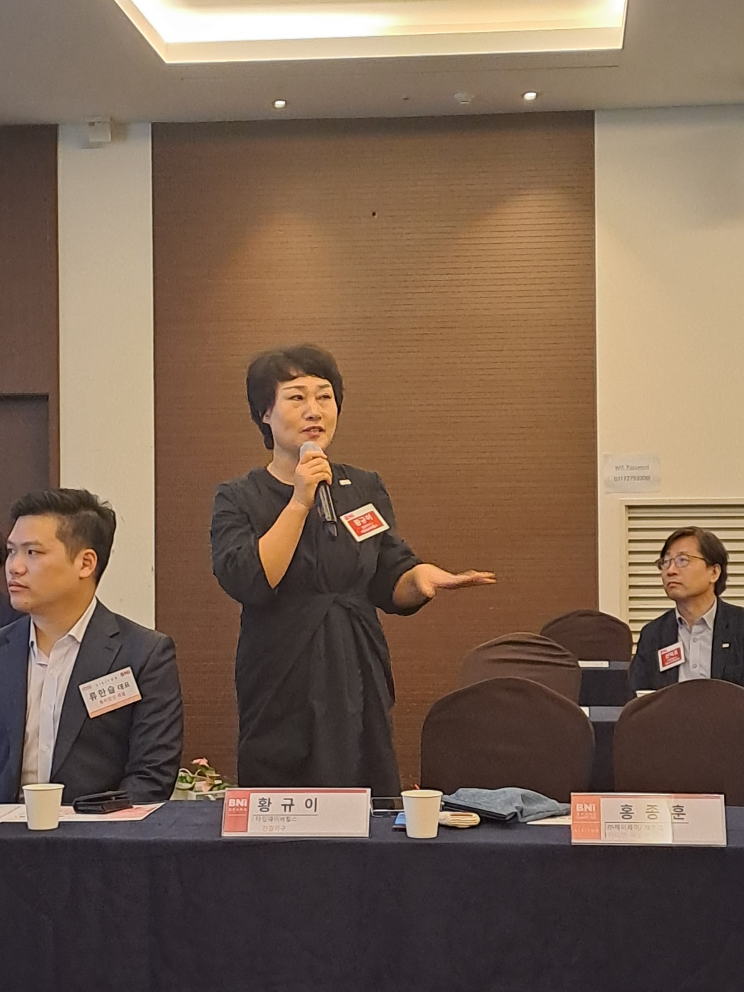 삼도회계법인 홍세기 회계사가 bni 목표와 개요에 대해서 발표하고 있습니다.