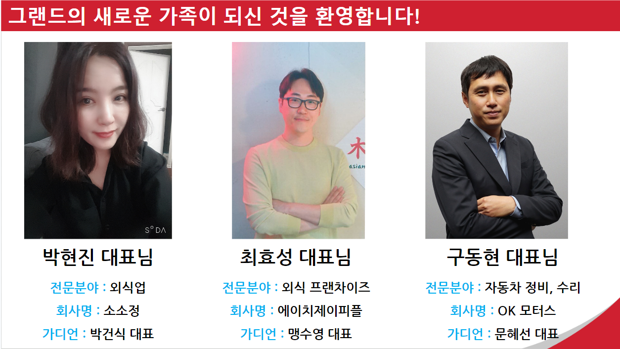 그랜드챕터의 세 분의 신규멤버 대표님 환영합니다.
