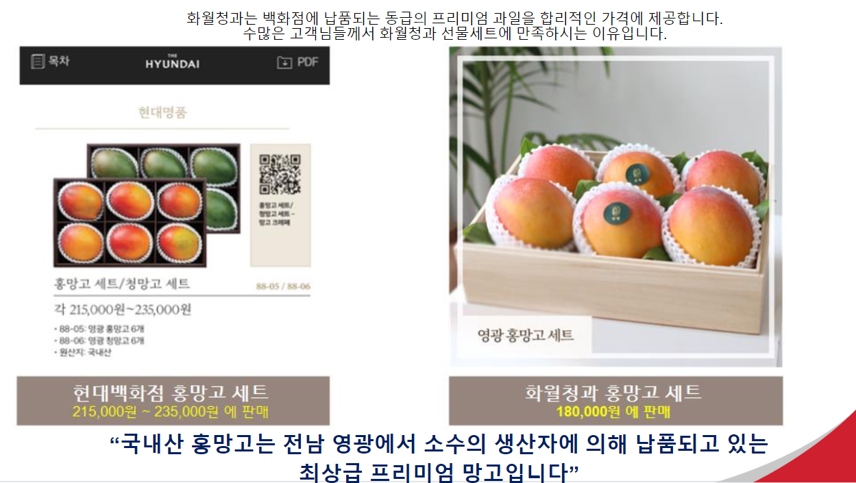 최상급 프리미엄 망고 제품을 백화점보다 경쟁력있는 가격에 판매하고 있습니다.