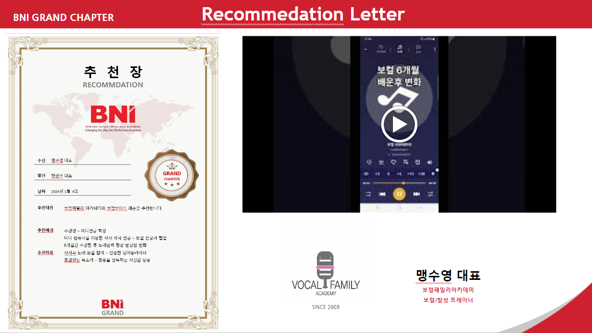 더쓰임마케팅의 한관우대표가 보컬패밀리의 보컬레슨을 추천해주었습니다.