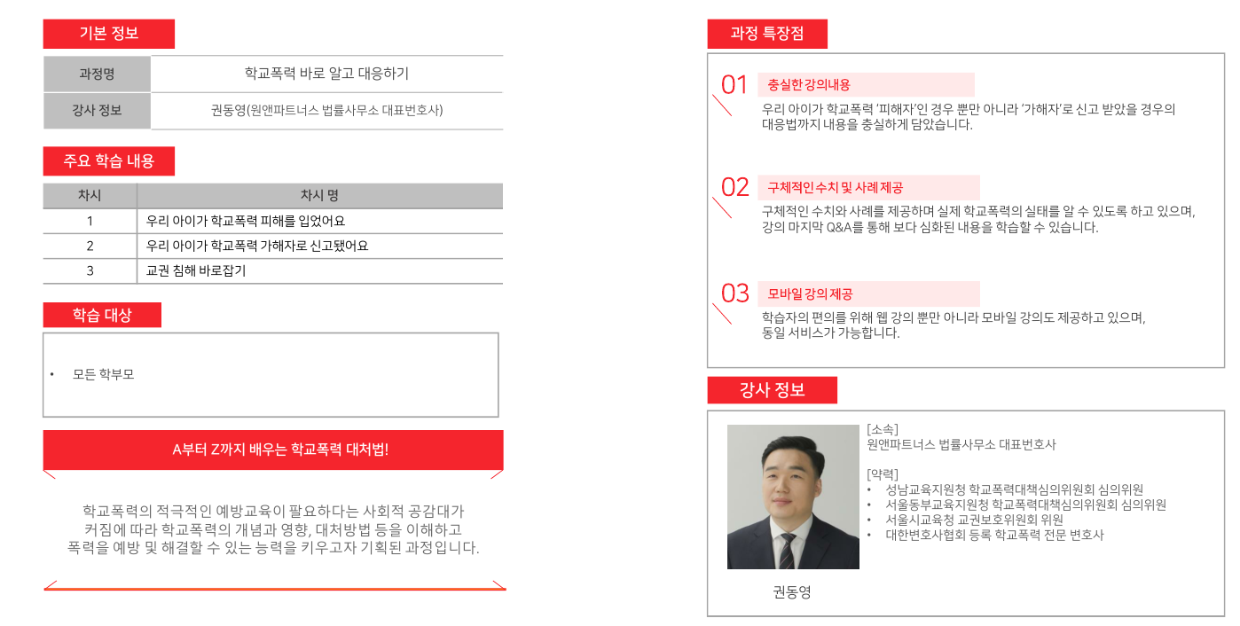 - 학교폭력에 관련된 사항이나 교권침해에 대한 교육이 필요하다면 한국이러닝교육원의 권경록 대표를 찾아주세요.