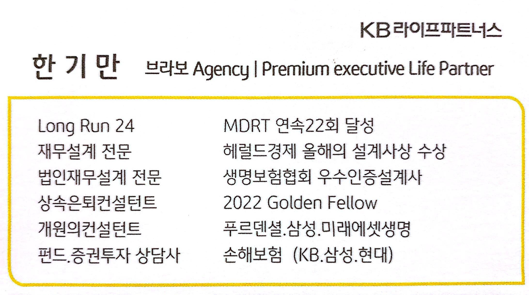 그리고 현재까지도 Prudential 과 KB라이프파트너스에서 보험 및 재정 컨설팅 사업을 수행하고 있습니다.