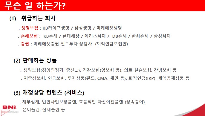 피쳐프레젠테이션 BNI - KB라이프파트너스 한기만 대표님