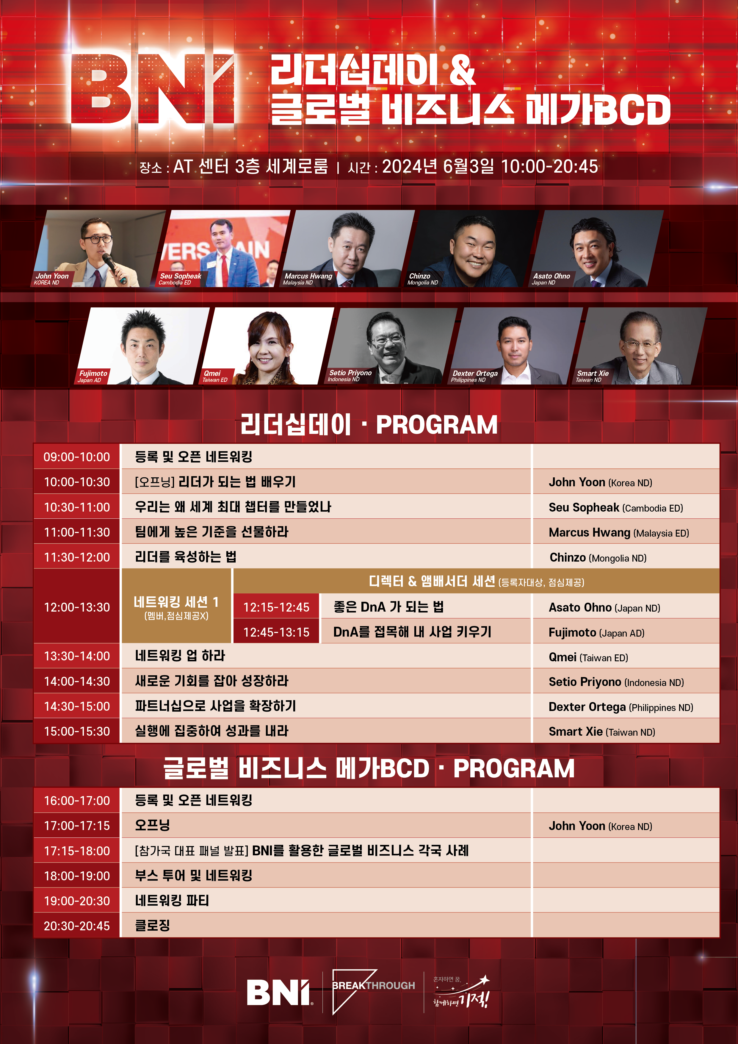 1985년에 창업자 아이번 마이즈너 박사에 의해 시작된 BNI는 현재 11,039개 이상의 챕터와 31만 8천 명 이상의 멤버가 76개국에서 활동하고 있습니다. 지난 12개월 동안 BNI 멤버는 1,460만 건이 넘는 사업 소개(Member Referrals)를 주고 받았으며 액수로는 현시점까지 약 29조 438억원($22.1 Billion/환율: 1 USD = 약 1,314.30 KRW) 이상의 비즈니스가 이루어졌습니다.