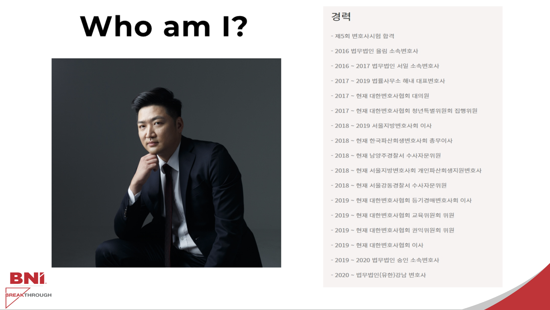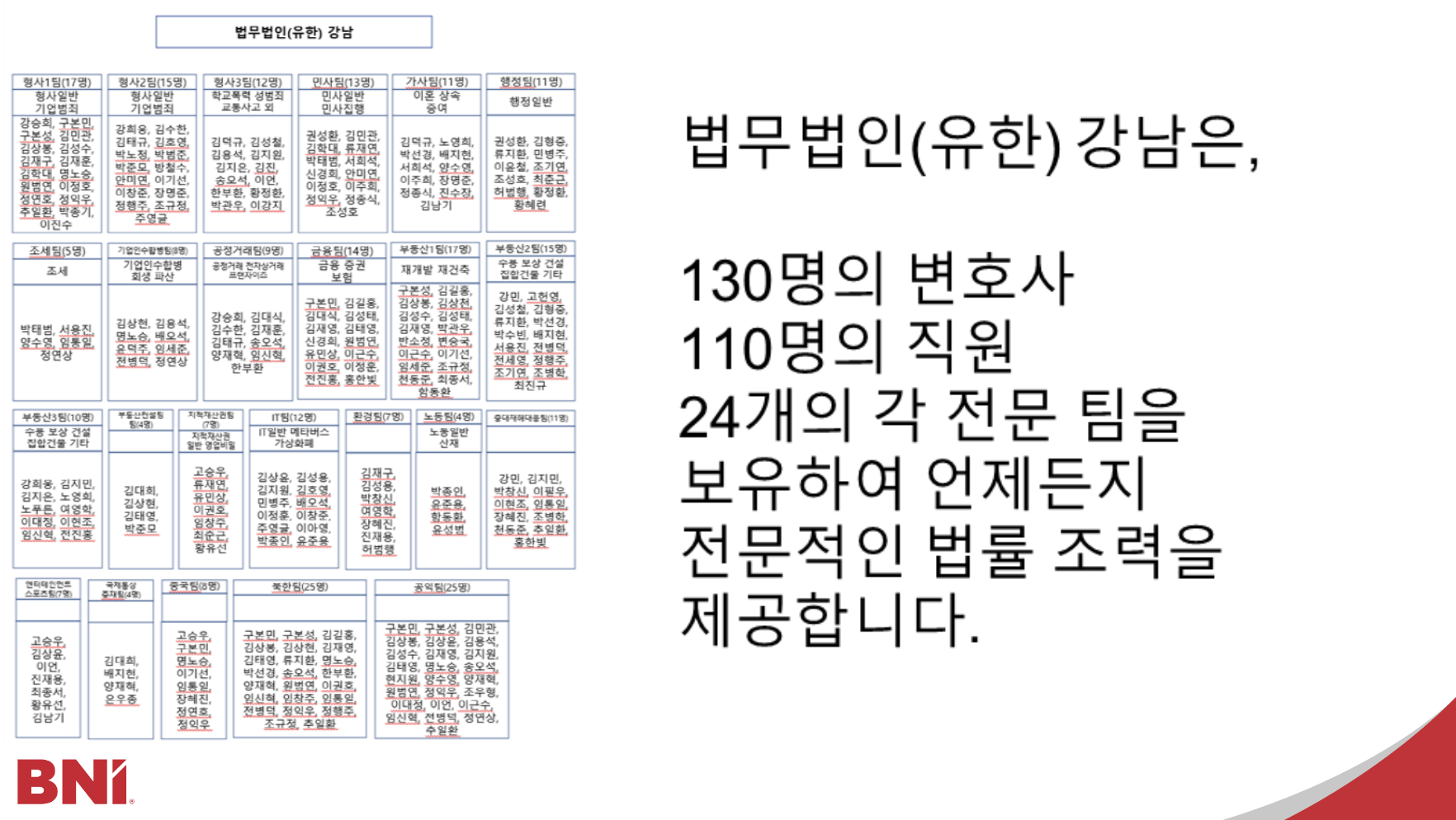 피쳐프레젠테이션 BNI [ 법무법인 강남 - 김용석 대표 ]