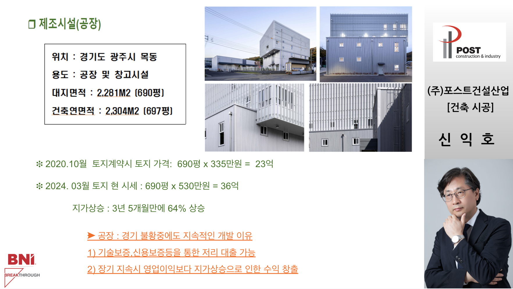 - 공장이 필요해 건축을 계획중인 분을 소개해 주세요.