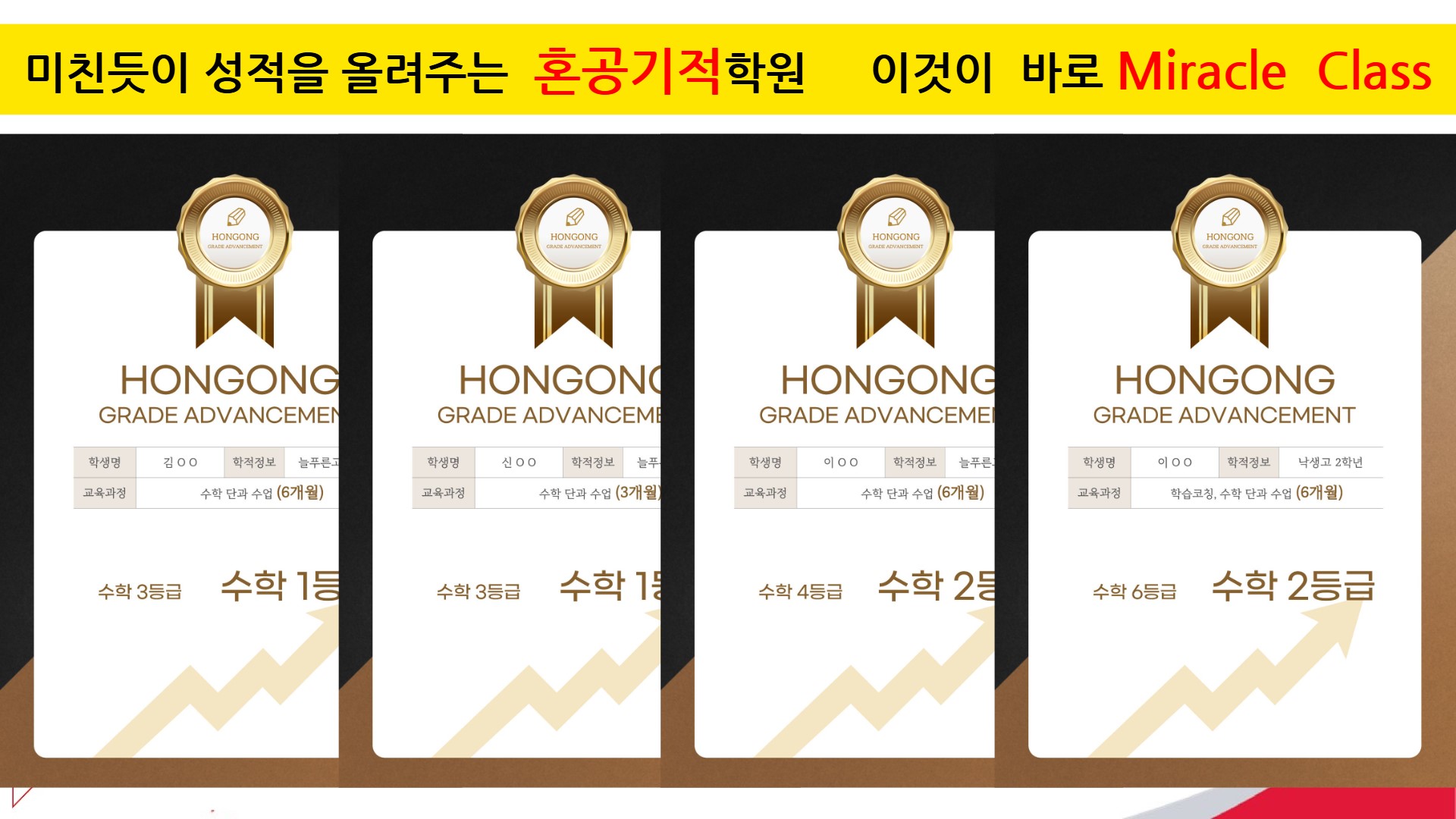 6개월이라는 말도 안되는 기간에 수학등급을 올려주는 혼공기적학원!
