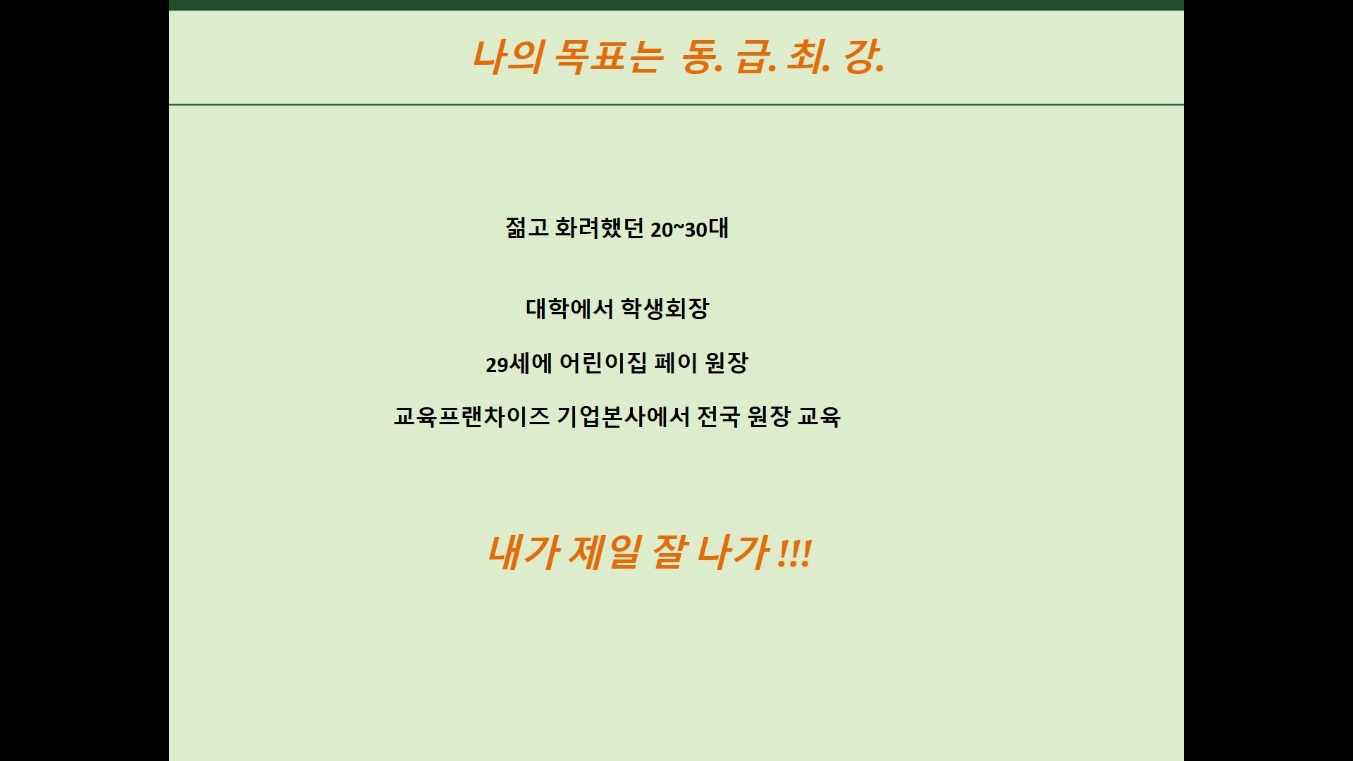 비엔아이 그랜드 챕터 주간회의 유명 연예인과 소리 전문가도 배우는 보컬&보이스전문학원 <보컬패밀리 - 맹수영 대표> 피쳐프레젠테이션 (9) | 2024.10.07 |