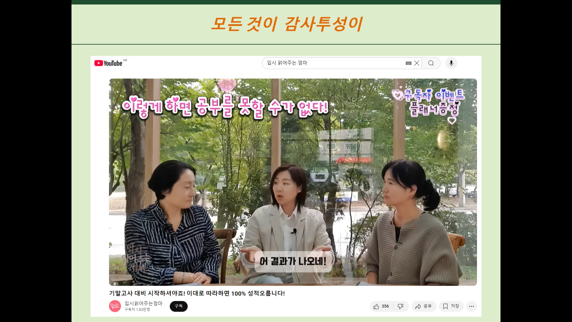 유튜브 입시 채널에 출연해 방송 나간 당일 조회수 1만개 돌파와 상담문의 70건 이상 대기상태 입니다.