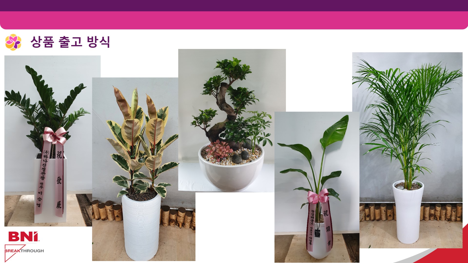 - 상품을 출고하는 방식은 매장에 배치해둔 식물과 화분을 바로 현장에서 분갈이 해서 출고하고 있습니다.
