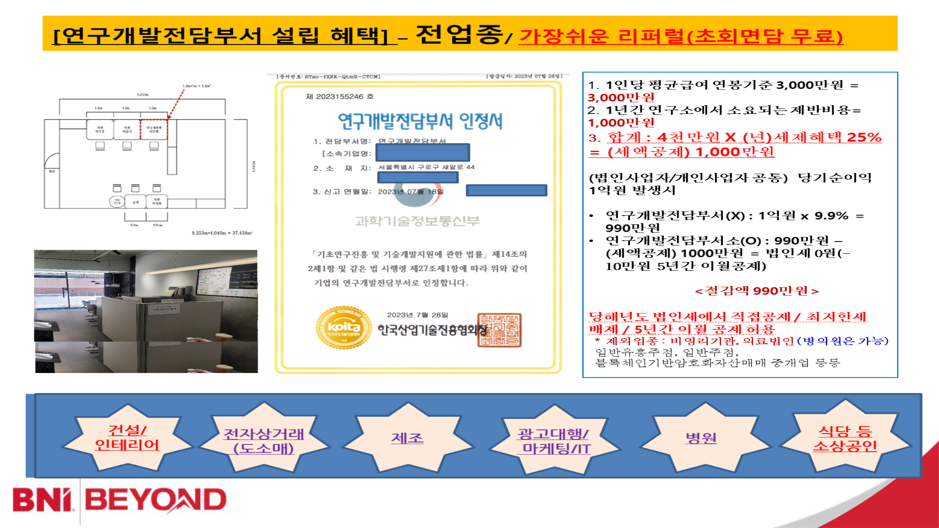 연구개발전담부서 설립 혜택으로 절세 꼭 하시기 바랍니다.