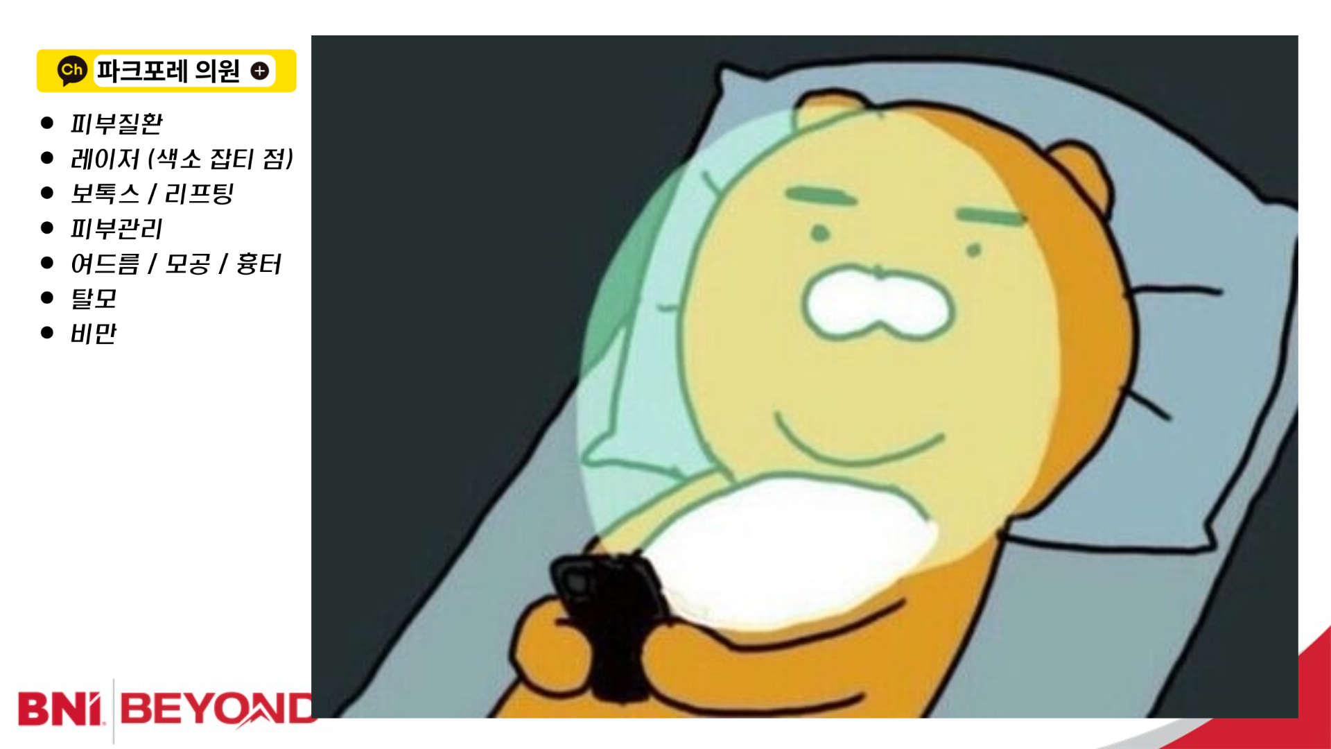 | 비엔아이 그랜드 챕터 주간회의 < 태헌한의원 - 김태헌 대표 > 피쳐프레젠테이션 (4) | 2025.04.30 |