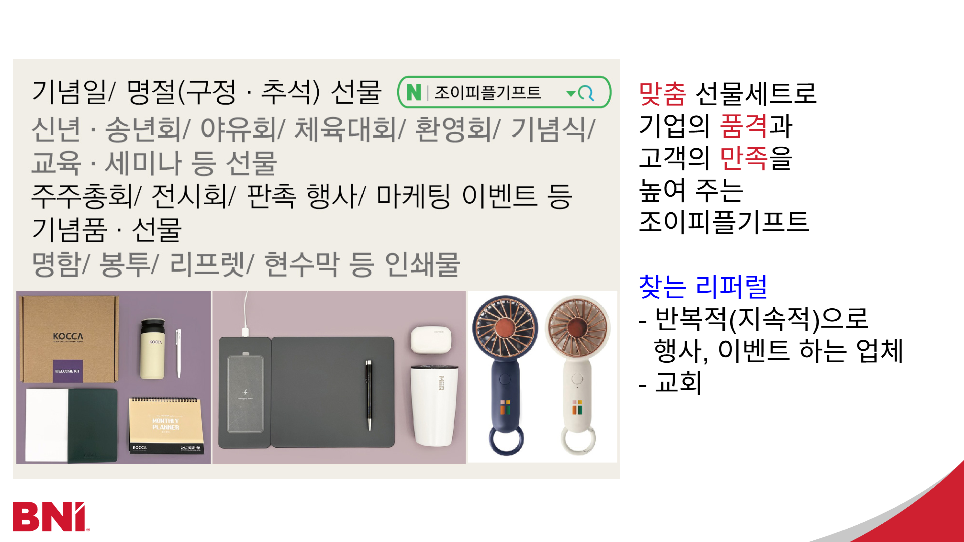 피쳐프레젠테이션 BNI [ 조이피플기프트 - 윤창용 대표 ]